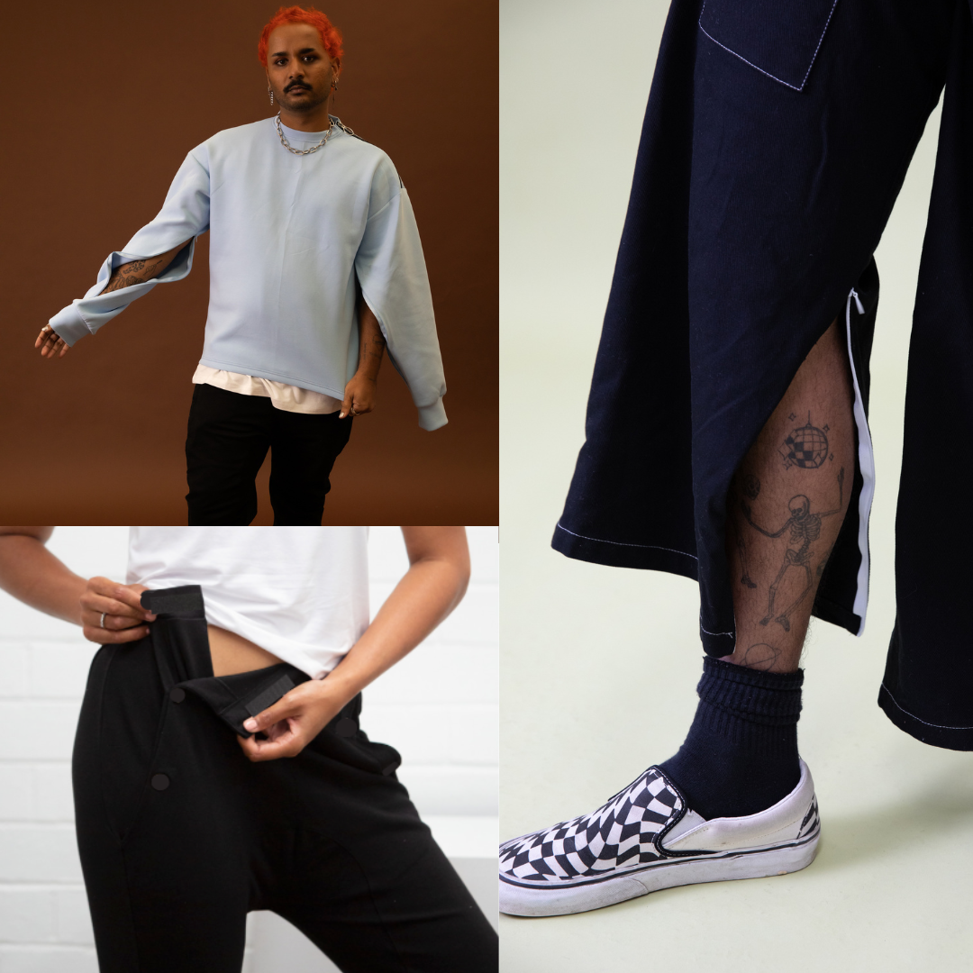 Our products are adapted to include those with disability, which means all of our items have design features that make it easier for someone to get dressed or wear the clothing more comfortably. This category of fashion is often referred to as 'Adaptive Clothing'. Read more about this in our blog here.